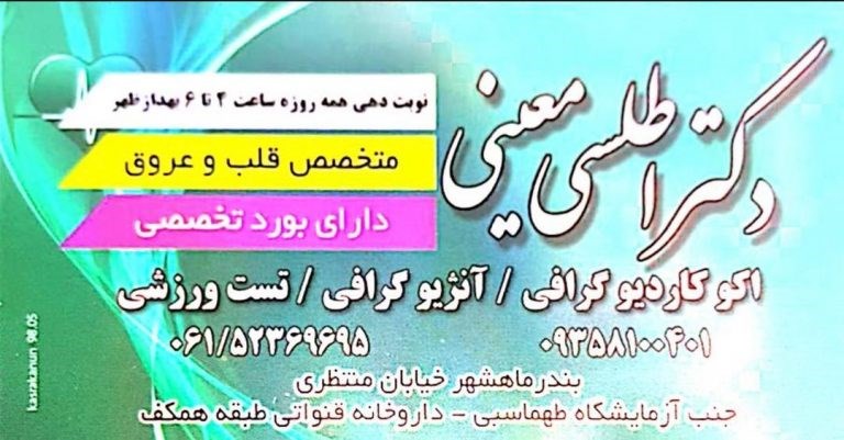 متخصص قلب و عروق اکوکاردیوگرافی-آنژیوگرافی هولتر ریتم و هولترفشار تست ورزشی متخصص قلب و عروق دارای بورد تخصصی