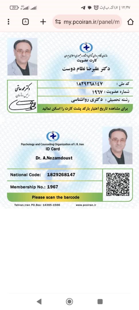 عضو سازمان نظام روانشناسی و مشاوره ایران