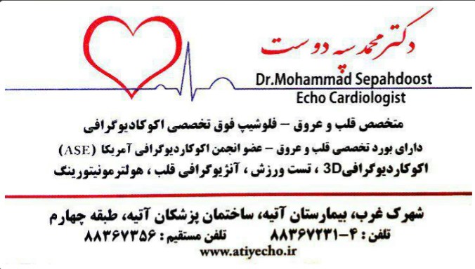 متخصص قلب و عروق_فلوشیپ فوق تخصصی اکوکادیوگرافی_دارای بورد تخصصی قلب و عروق_ عضو انجمن اکوکاردیوگرافی آمریکا(ASE)